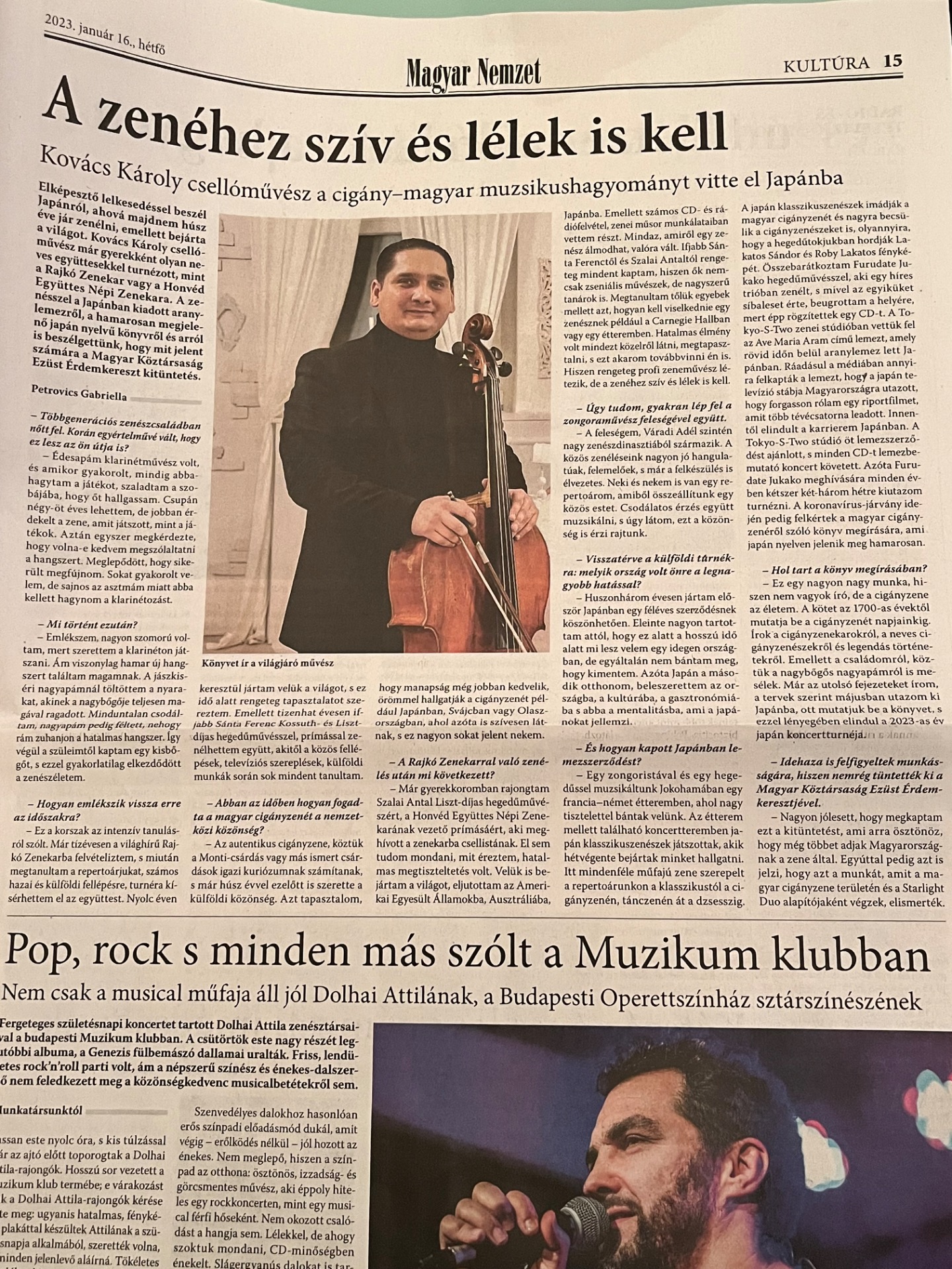 Művészetemről a Magyar Nemzet is készített cikket, amelyben kiemelték, hogy a cigány‑magyar zenei hagyományt nemzetközi szinten képviselem Japánban és más országokban. Ezen kívül a Duna TV is készített rólam egy családi riportot, és a japán és a olasz televízió is bemutatott koncertjeimet és tevékenységemet.
